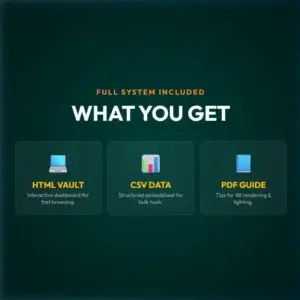 - 📘 Pro-User Quick Start Guide: My “Secret Sauce” on lighting temperature (Kelvins), camera optics (f-stops), and material layering.